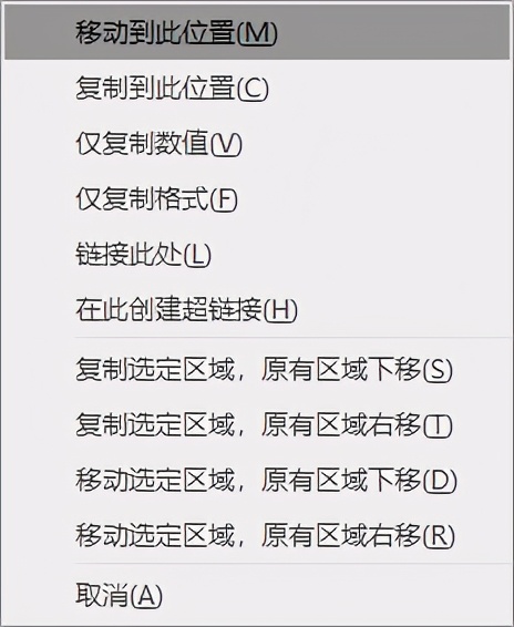 ① 使用右键互换行数据时,需要选择「移动选定区域,原有区域下移」;