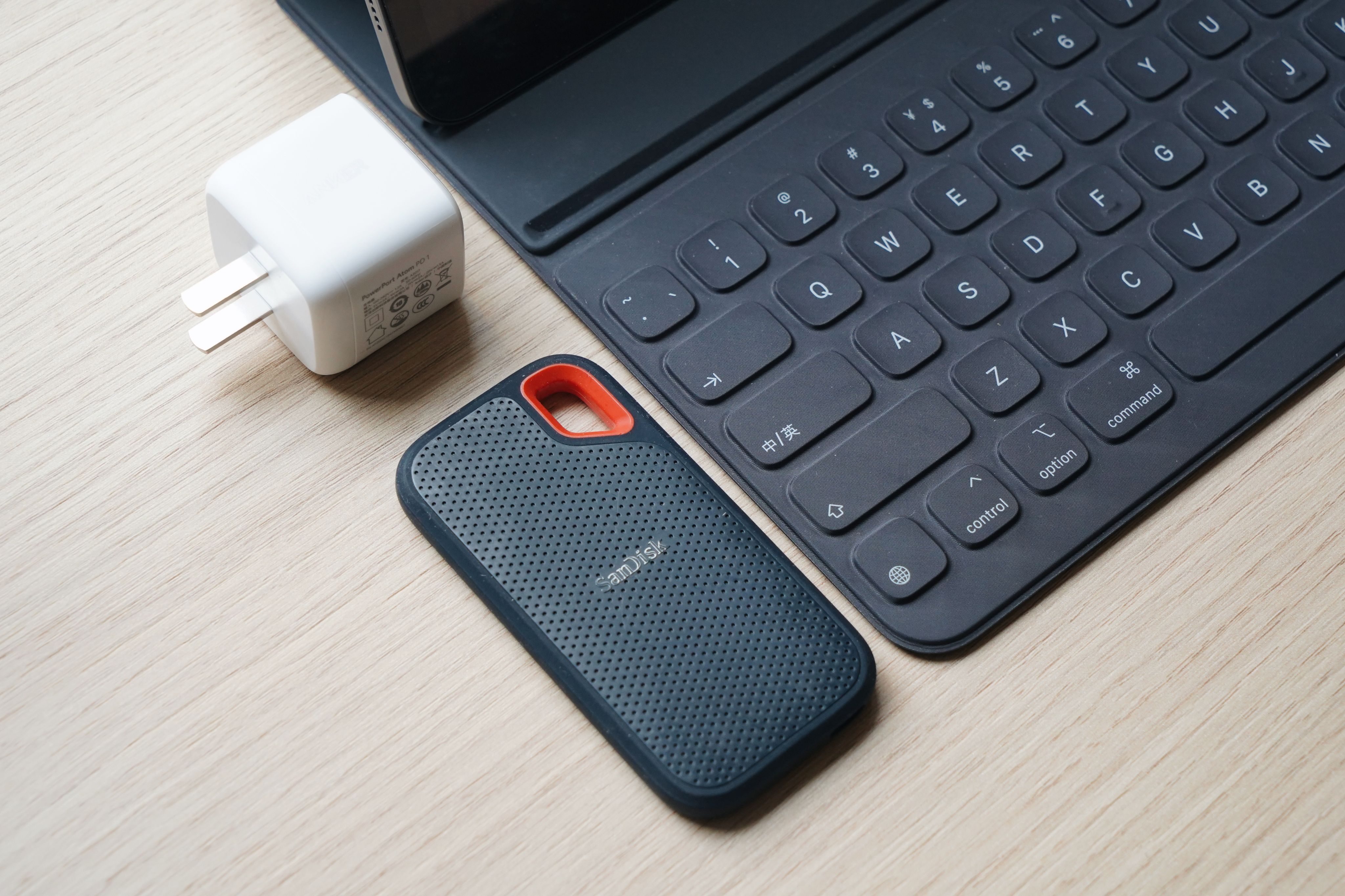 我的iPad Pro买的是256GB版本,但是剪辑视频就有点不够用了,所以我还配了Sandisk的SSD,容量有250GB-2TB不等,主要的优势就是小巧,三防,而且传输速度也不慢,能达到500MB/S的读取速度。