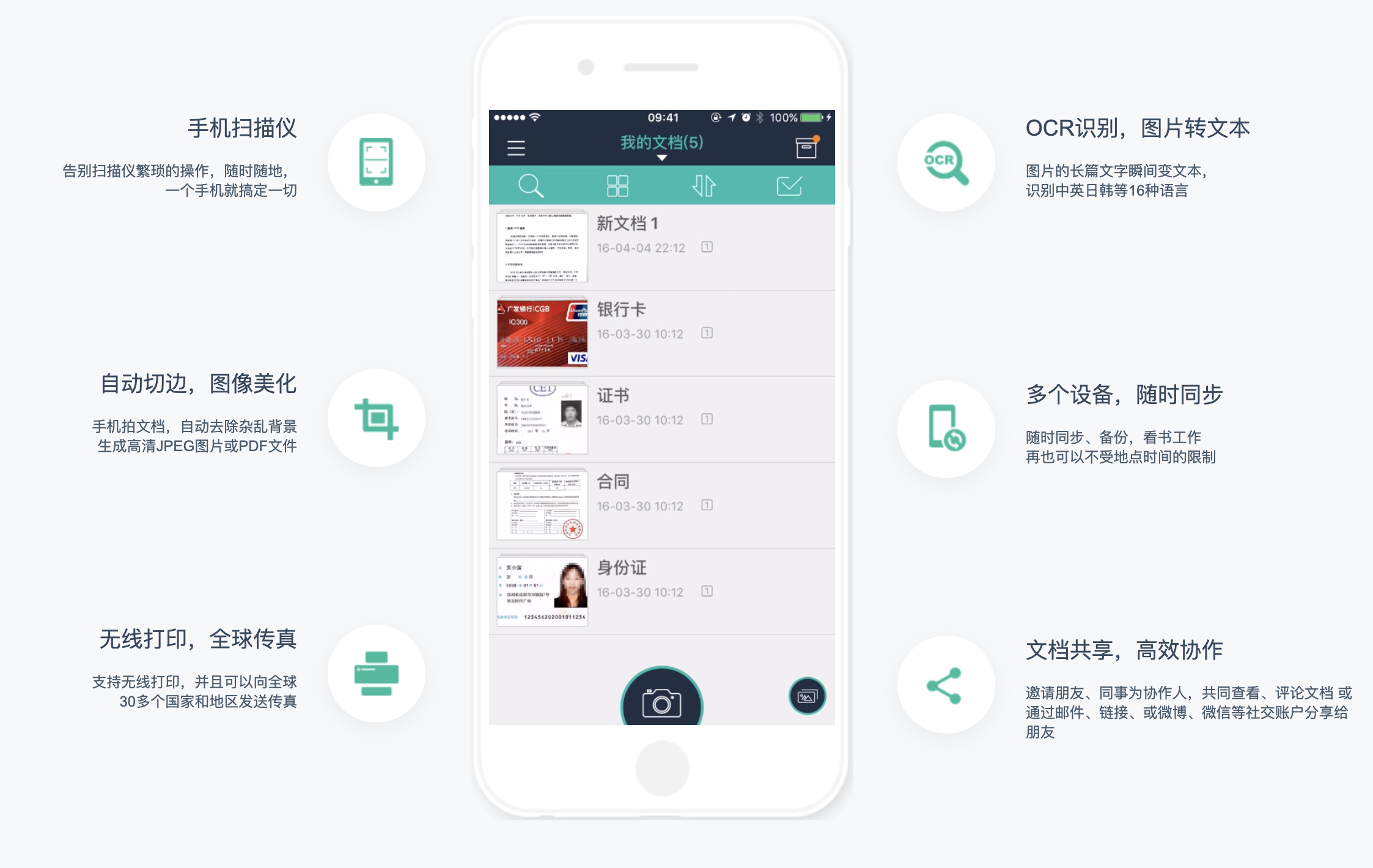 《扫描全能王》正如其名,全能得力干将,我的手机上也装了这了软件,不仅可以自动切除文档背景,智能OCR还可以拼图,一键发送到打印机等等,最主要的是效果清晰,使用简单,比扫描仪省事了不少;不过有个缺点,我购买的是它的付费版,但是付费版没有做iPad适配,只能用iPhone的缩放,稍微有点不舒服。