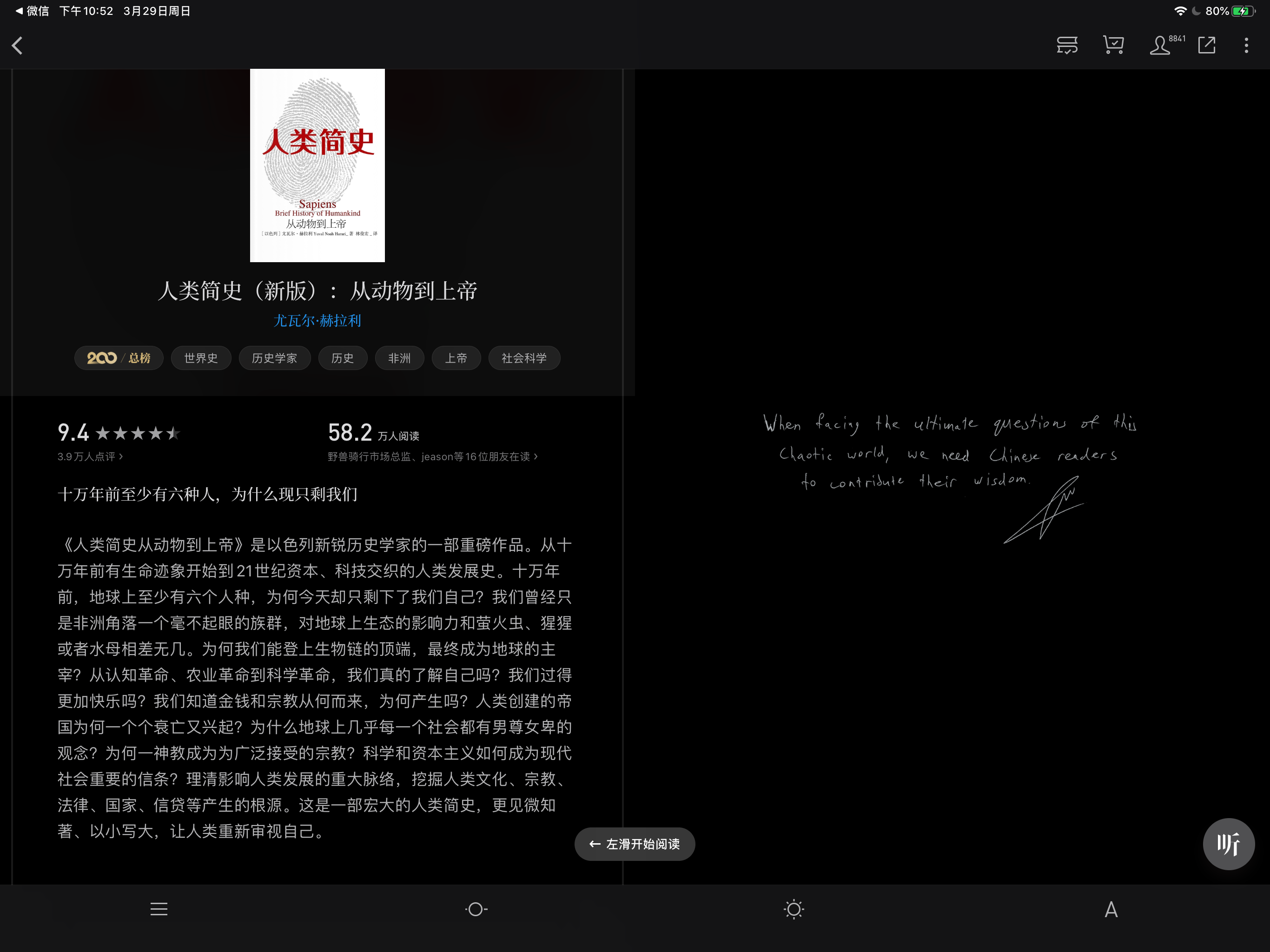 当然自从更新了黑夜模式后,我用iPad 看书的时间也就多了,:)
