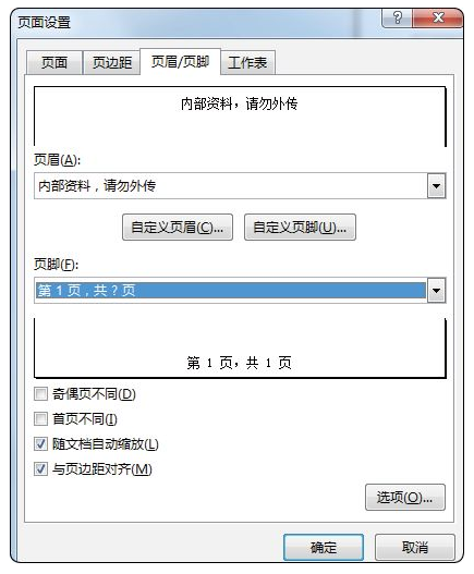 Step1 打开自己需要插入页码或页眉的Excel文档,单击菜单文件→打印→页面设置→页眉/页脚,如图1-5-50所示。
