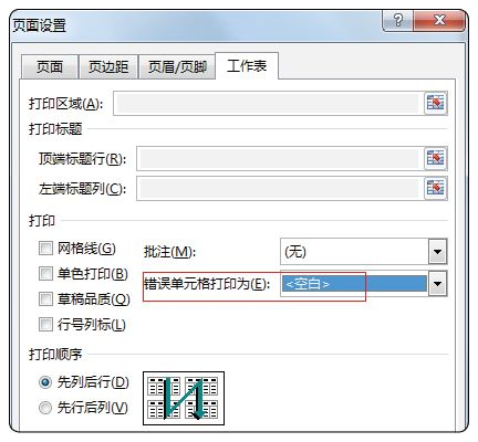 如图1-5-58所示,工作表中有错误值#N/A,如果数据源中不删除,打印时为美观不显示错误值,只需单击菜单文件→打印→页面设置→工作表,“错误单元格打印为”下拉框选择“空白”,这样显示错误值的打印出来显示空白,如图1-5-59所示。