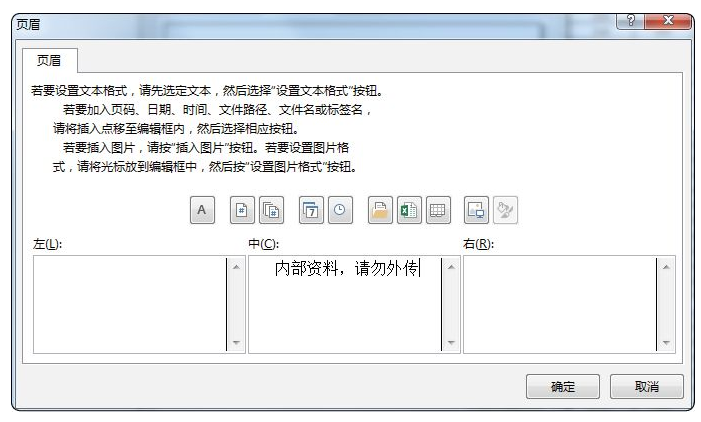 Step2 单击“页眉”下拉菜单,在下拉菜单中选择想要插入的页眉格式,也可以单击“自定义页眉”,页眉可以放置于页面的左、中、右,比如,输入页眉内容“内部资料,请勿外传”,单击“确定”,如图1-5-51所示。