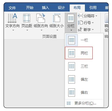 既然同为微软Office组件之一的Word具有分栏功能,我们可以把Excel中表格粘到Word中来分栏、打印输出。按组合键【Ctrl+A】全选表格所有数据,粘贴到Word中,如图1-5-55所示,单击菜单布局→分栏→两栏就可以实现两栏的效果了。