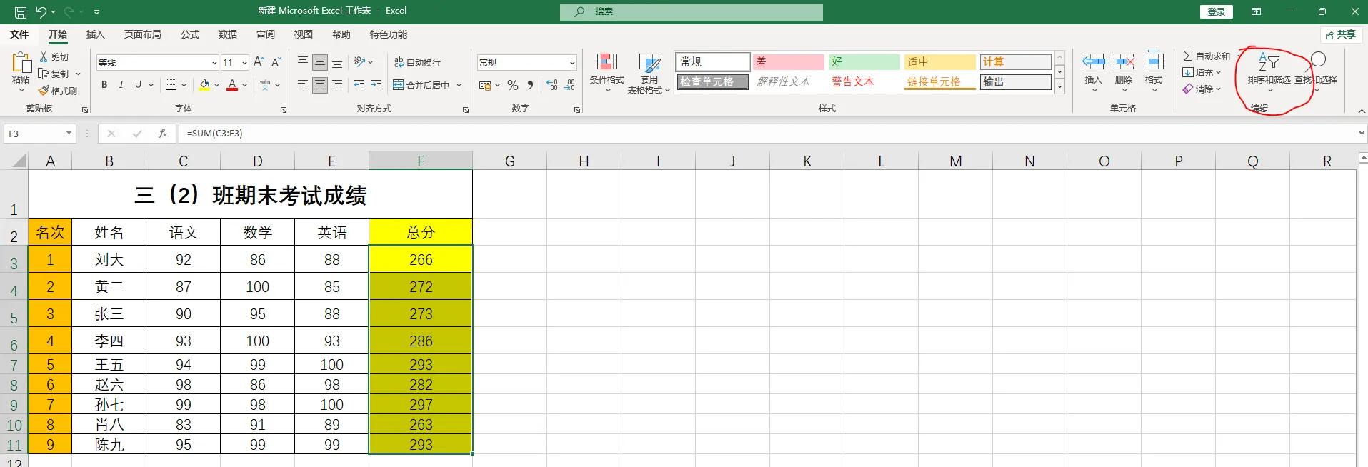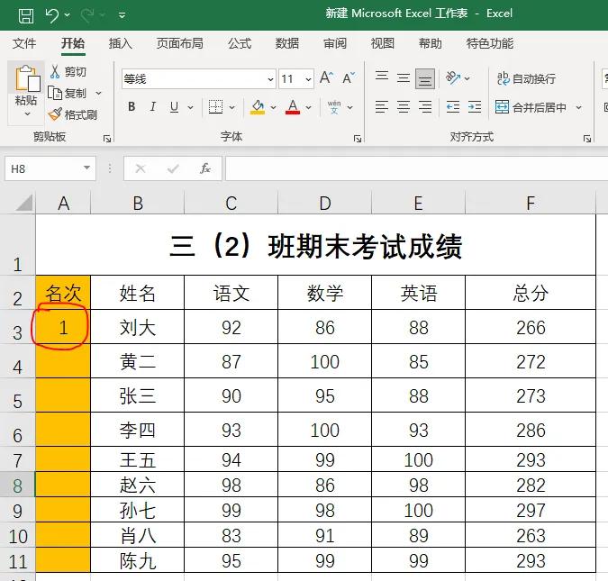 今天学习Excel表格数据按顺序自动排序的方法。