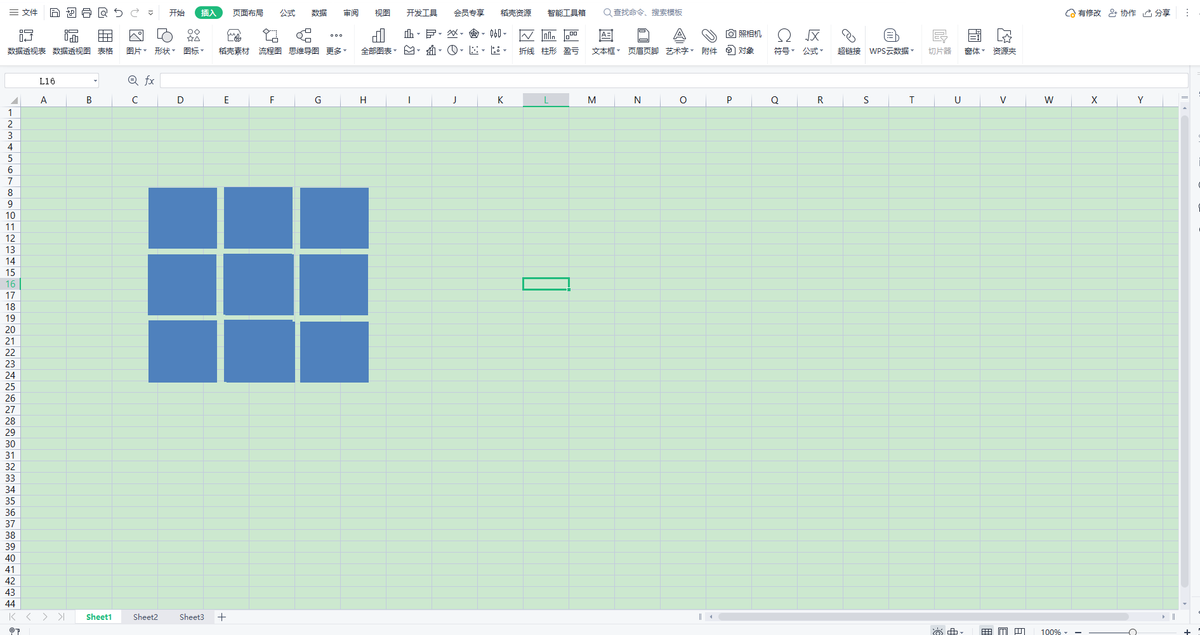 8、接下来,我们选中任意一个正方形,使用Ctrl+A全选,再按住Ctrl+Shift键,用鼠标向下拖动刚刚选择的正方形,就形成了九宫格的形状;