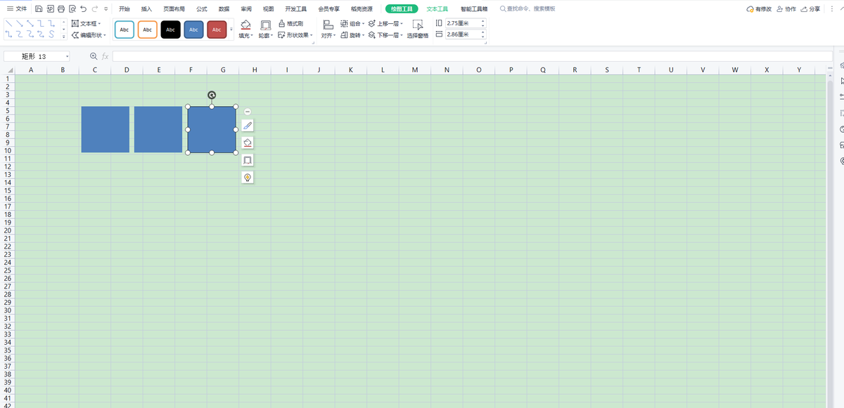 7、然后选中正方形,按住Ctrl+Shift键,用鼠标向右拖动出两个一模一样的正方形;