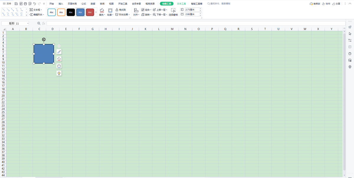 5、这时,鼠标就变成了黑色十字架的形状了,我们按住鼠标左键,在表格中画出一个正方形图形;