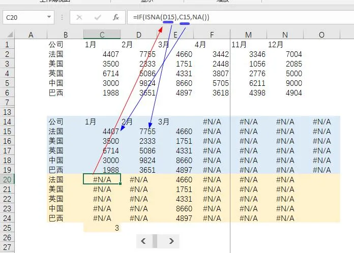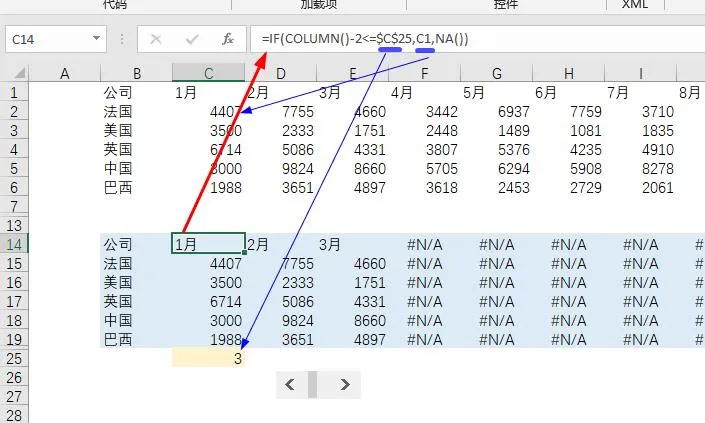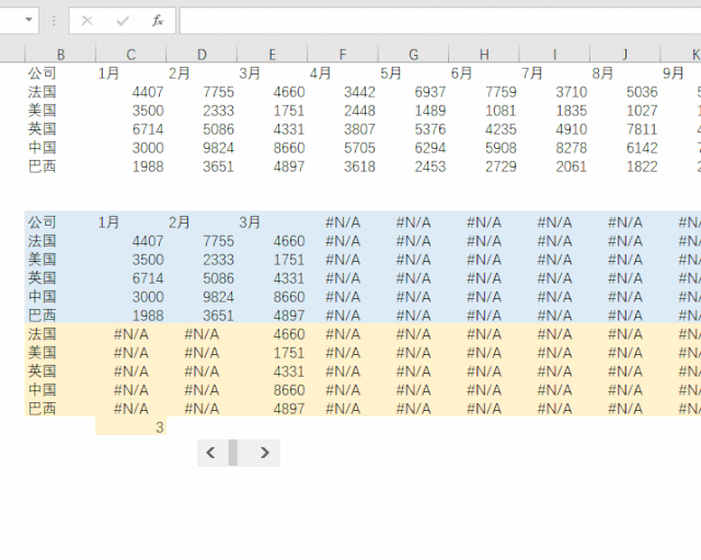 根据滚动条返回的值,动态显示上表的数据,超出的列数用NA函数返回错误值#NA