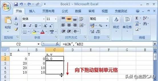 当然也可以直接将坐标输入按x,y格式输入到一行里,但用属性提取EATTEXT等或其他工具获取的坐标值通常是将XY坐标分开为两列的。