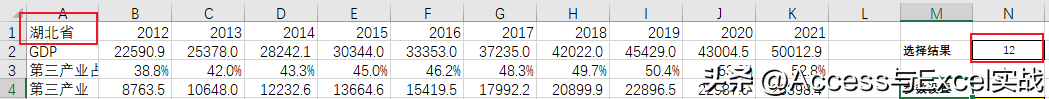 再将B4:B4数据区域的公式复制到C4:K4,将选定区域对应年份第三产业数据提取到辅助区域。