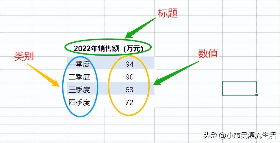 在EXCEL工作表插入饼图前要源数据表的格式是否正确,源数据表要包含3个基础要素,1、标题;2、类别;3、数值;