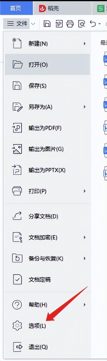 1、在wps 首页,新建文本文档,点击左上角的【文件】-【选项】