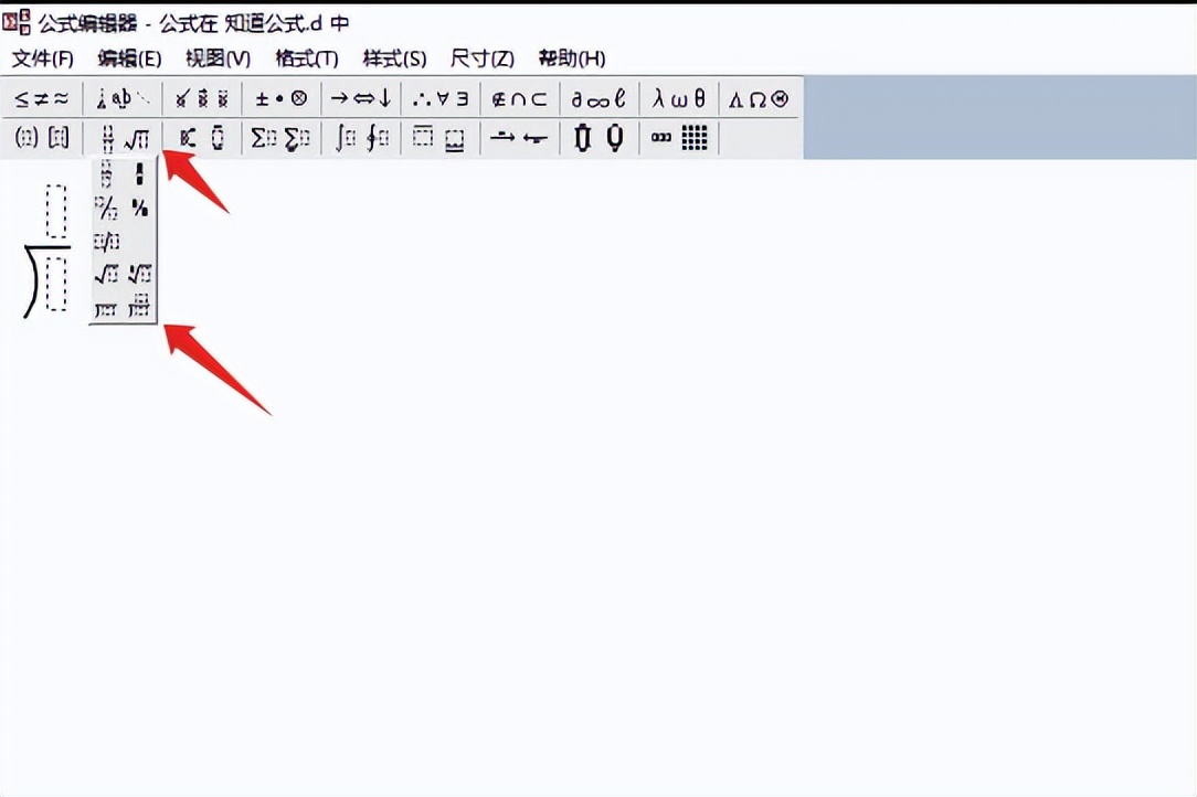 4、在弹出的【公式编辑器】界面,选择上方的【根号】系列,选择【除法竖式】样式