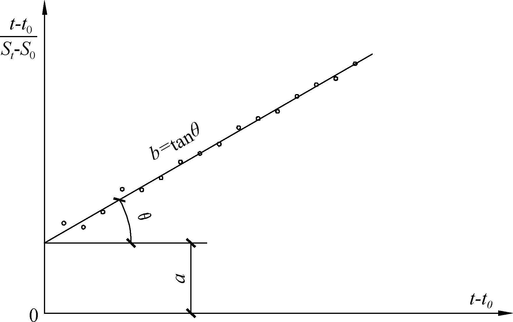 星野法求解a、b示意图可参照图2,将纵坐标改为(t-t0)/(St-S0)2即可,根据式(8)可计算出最终沉降。