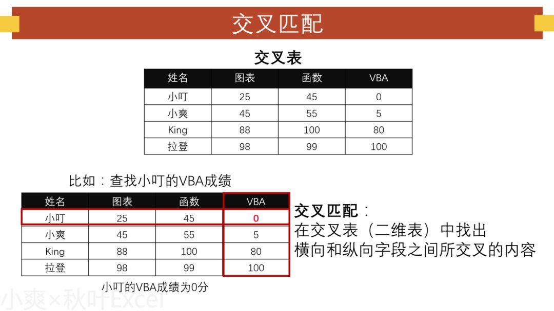 这个位置的结果可以作为 VLOOOKUP 函数的第三参数,来查找出交叉匹配中的值,该做法是最常见的交叉匹配的做法。