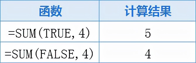 例如:在B1单元格输入"=SUM(1,A1,3)"(输入时不包括引号),A1单元格的内容“=5+5=10”为逻辑值TRUE,显示结果为4,因为A1单元格为引用中的逻辑值,不参与计算,所以结果为1+3=4。