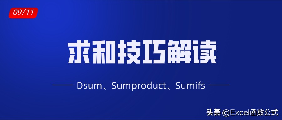 求和,看似很简单,但在Excel的实际应用中,也有很多技巧,除了用Sum求和外,还可以用Dsum、Sumproduct、Sumifs、Sumif以及快捷键、命令来求和。