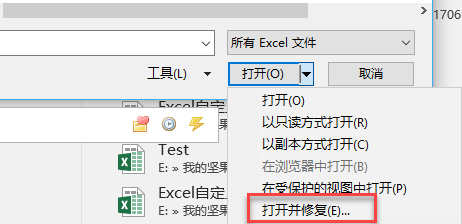 如果Excel文件根本不能够使用常规方法打开,那么可以尝试Excel 中的“打开并修复”功能,该功能可以检查并修复Excel工作簿中的错误。