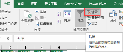 是的,当数据表中有很多列的情况,如果对某些列进行了筛选,很难查找哪些列处于筛选。但是,也不用一列一列去看,直接「清除」筛选,即可回到最初的状态。