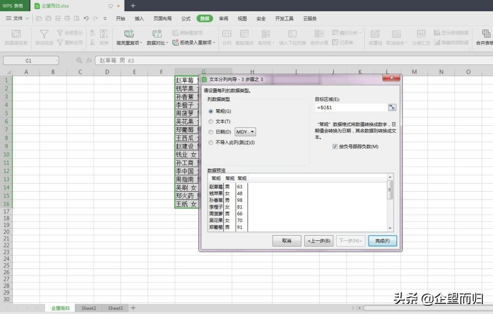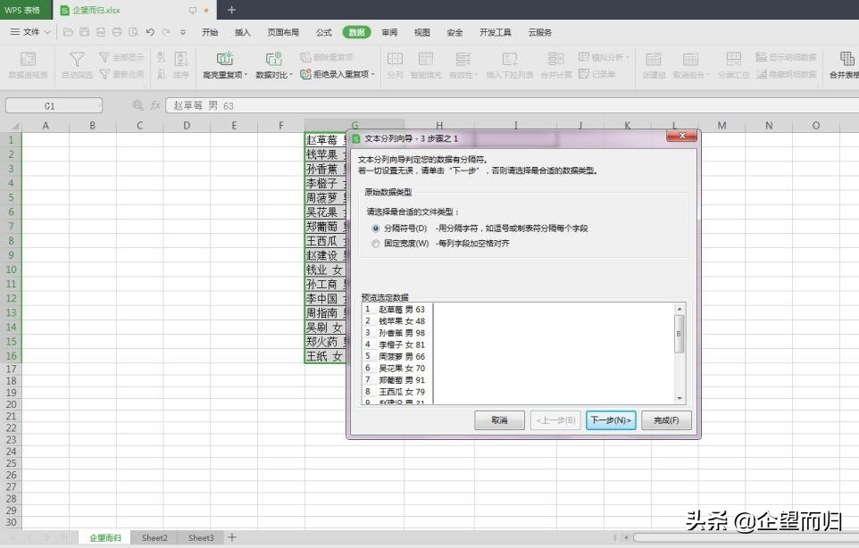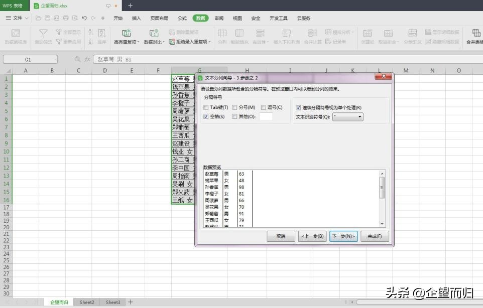 数据按空格分列成3列,把单元格内容居中就可以了,这么简单的分列内容,你学会了吗?