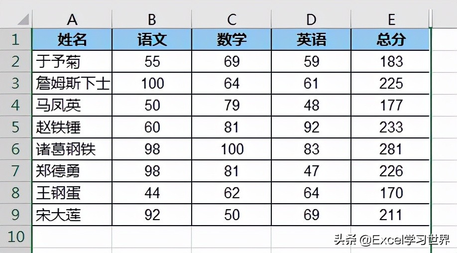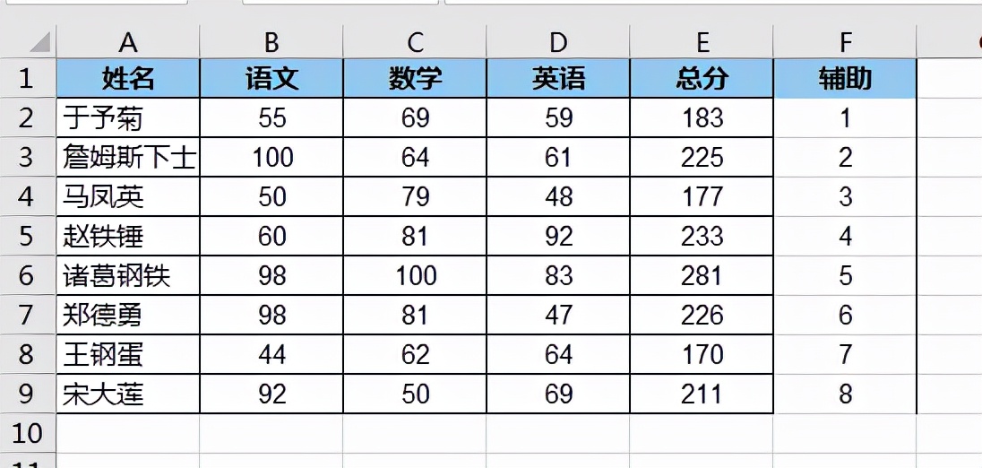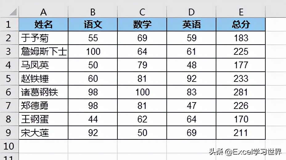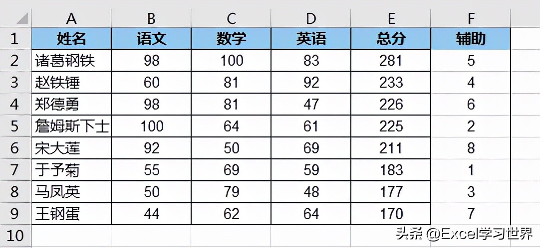 下图 1 是班级学生的各科成绩表,请按总分降序排序,需要的时候仍能恢复至原始的默认排序。