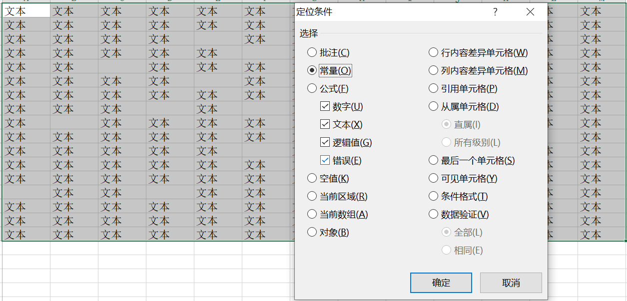 反选:选中单元格区域->菜单栏选择“开始”->查找和选择->定位条件->选中常量即可选中所有非空单元格