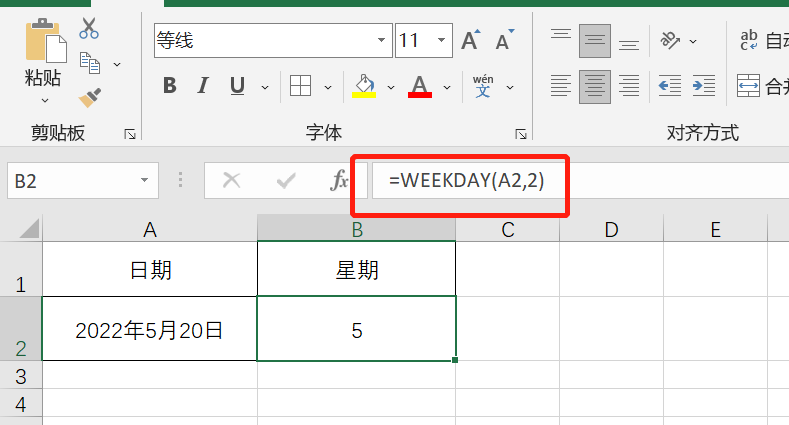 WEEKDAY函数在Excel当中是用来计算某日期的星期