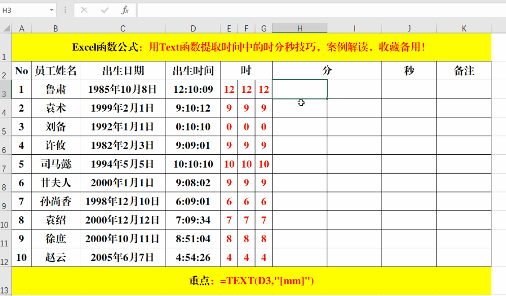 2、提取时间中的分。