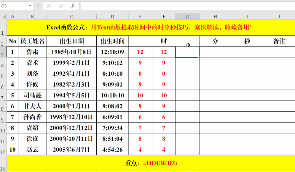 除上述方法之外,还可以使用Hour函数提取。