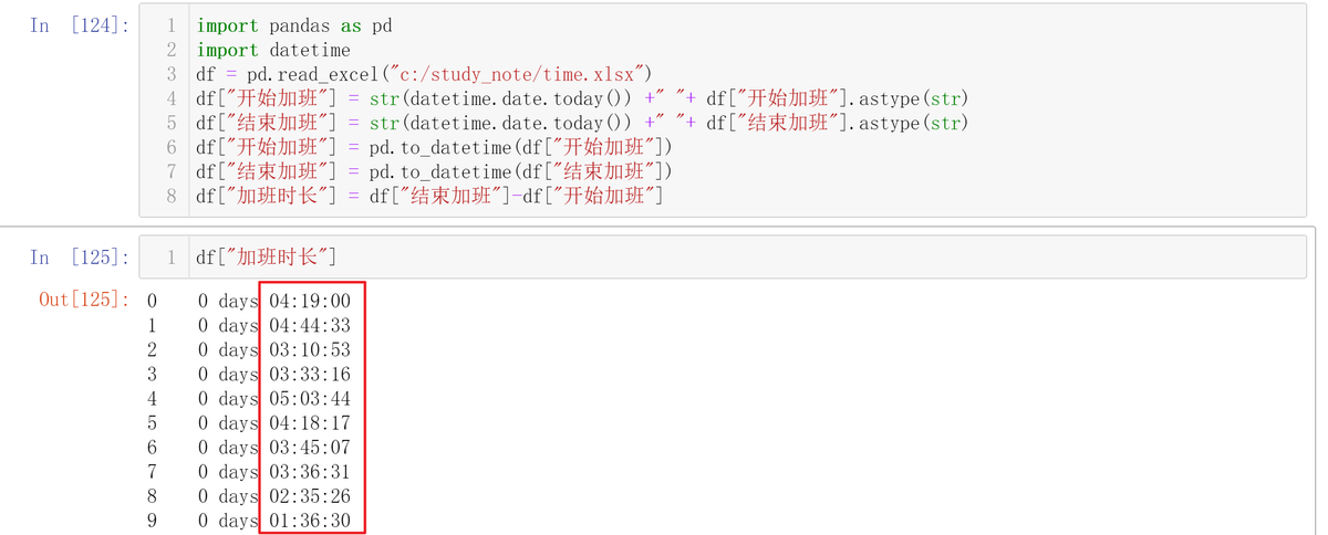 df["开始加班"] = str(datetime.date.today()) +" "+ df["开始加班"].astype(str)