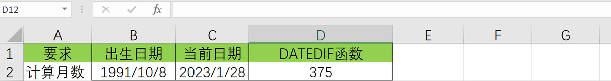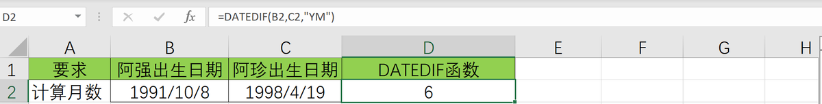 计算来到这个世界多少个月:=DATEDIF(B2,C2,"M")