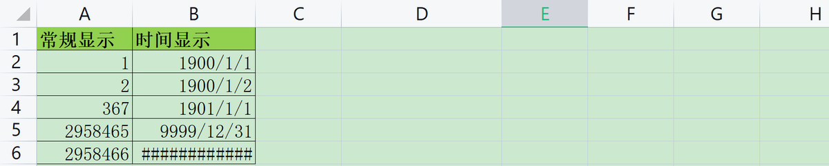 从这个可以看到一个数值代表时间里的一天,超过2958465这个数值则无法显示为时间格式