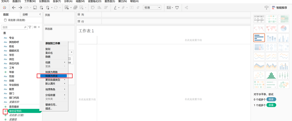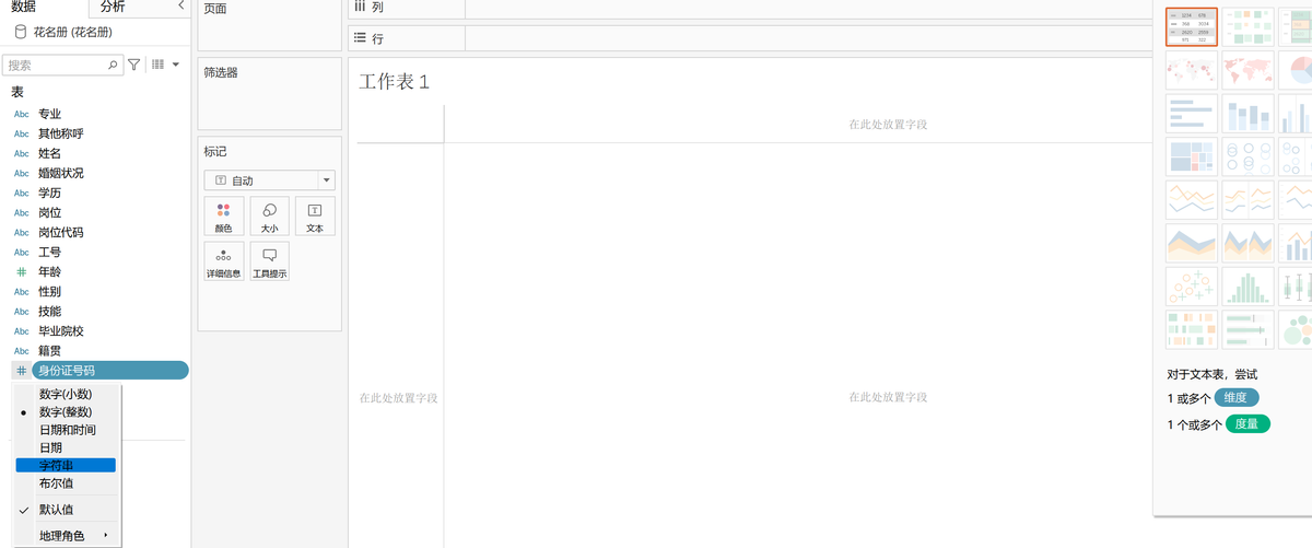 因为Tableau软件无法识别单独的时间格式,我们这里将原表的时间转换为字符串,再通过函数构建为日期时间格式