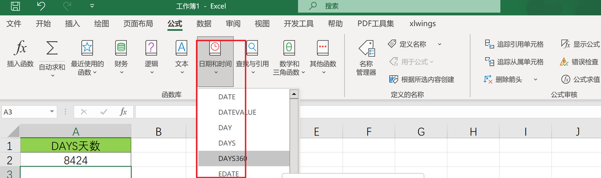 DAYS(end_date, start_date),这个函数计算两个日期之间相差的天数