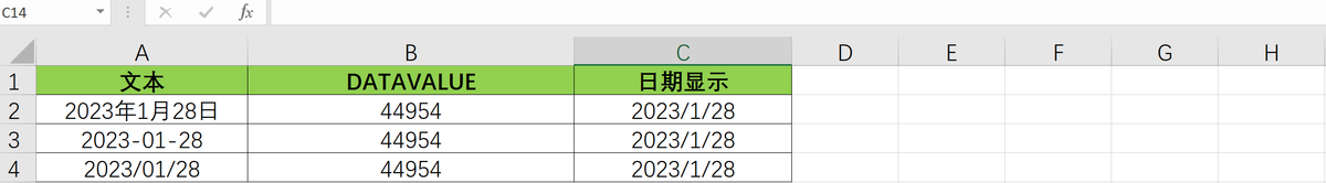 DATEVALUE 函数将存储为文本的日期转换为 Excel 识别为日期的序列号,里面只有一个参数,也就是文本格式的日期,例:把文本格式的单元格转化为日期格式,然后可以把44954变成日期显示