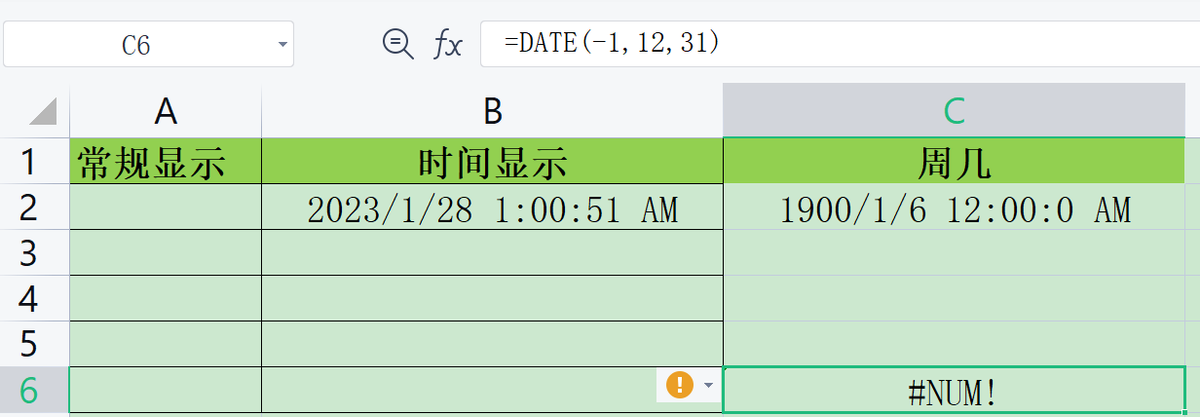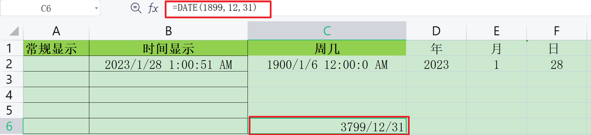 例=DATE(2023,1,38)表示从2023年1月1日(包括当天)开始加38天,38-31=7天,所以这个日期等于2023年2月7日