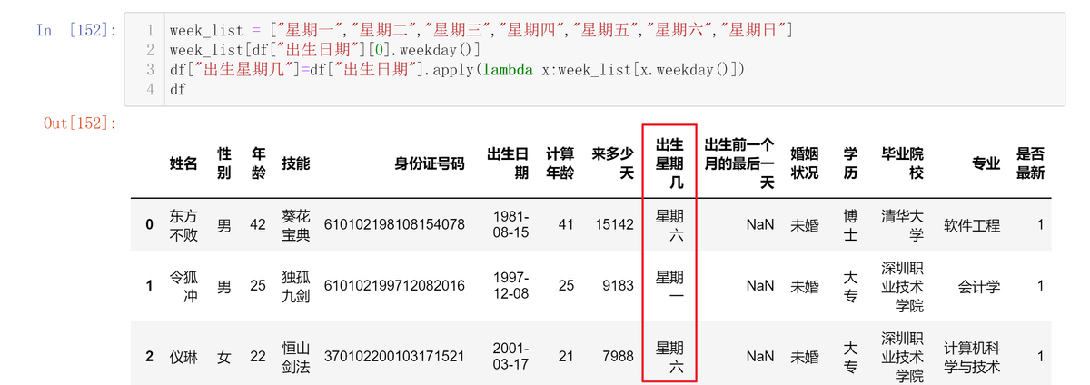 df["出生星期几"]=df["出生日期"].apply(lambda x:week_list[x.weekday()])