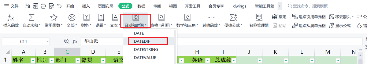 DATEDIF:这个是日期类函数最重要的一个,但在Excel中却是隐藏函数,所谓隐藏函数就是你在插入函数界面和帮助界面都查不到这个函数相关信息,但是直接输入这个公式却可以正常使用