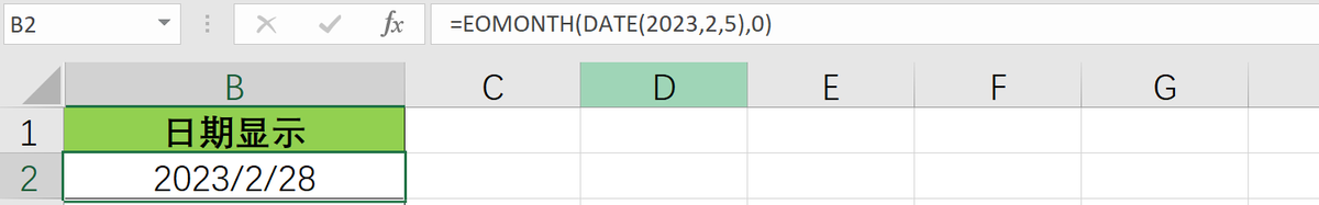 =EOMONTH(DATE(2023,2,5),0) 如果第第二参数是1代表日期取3月份的最后一天