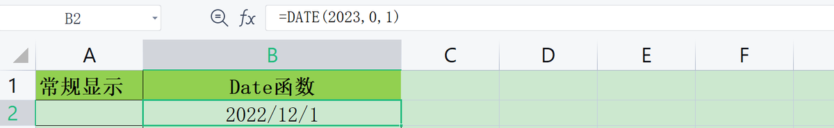 =DATE(2023,0,1)表示从2022年12月份-0个月等于2022年12月1日
