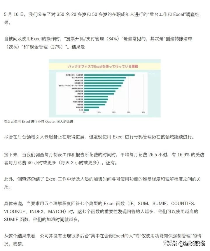 近日,日本的一项调查提出,越会用 Excel 的员工加班时间越长,加班时间最长的是那些会用 sumif() 函数的人。