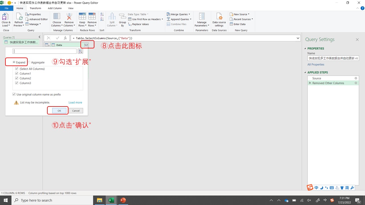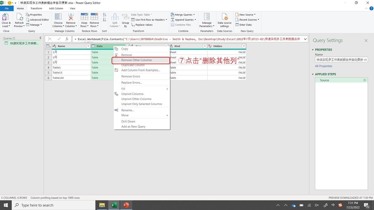 - 点击“删除其他列”⑦。