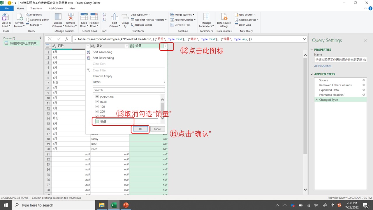 - 点击图标⑫,取消勾选“销量”⑬,点击“确认”⑭。