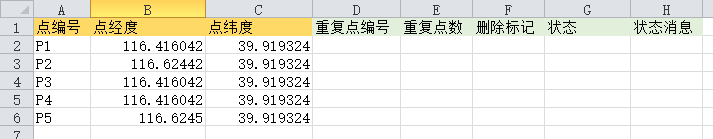 本文使用小O地图EXCEL版本对GPS坐标数据进行排重,标记表格中重复行的个数及重复点号,为数据做进一步处理提供依据。