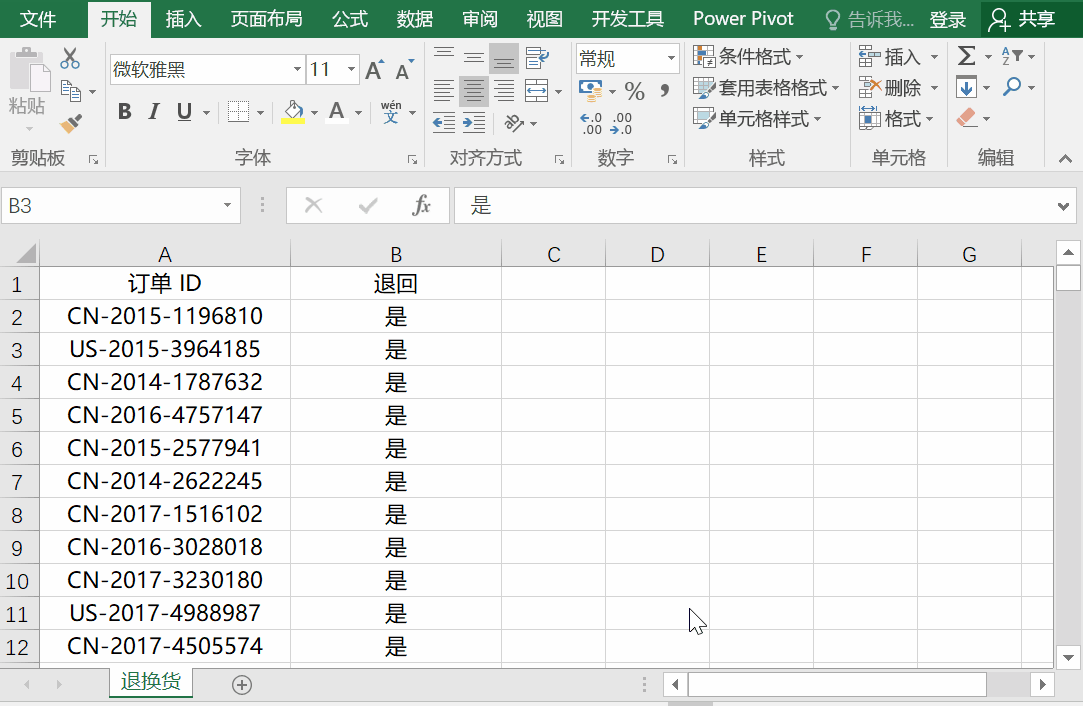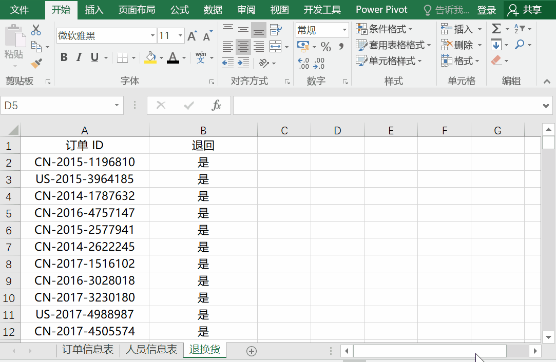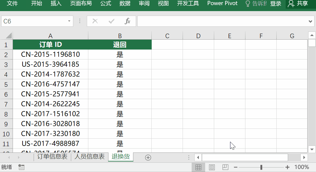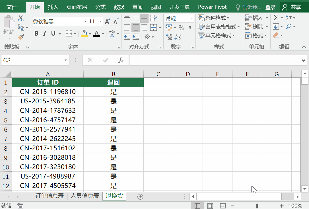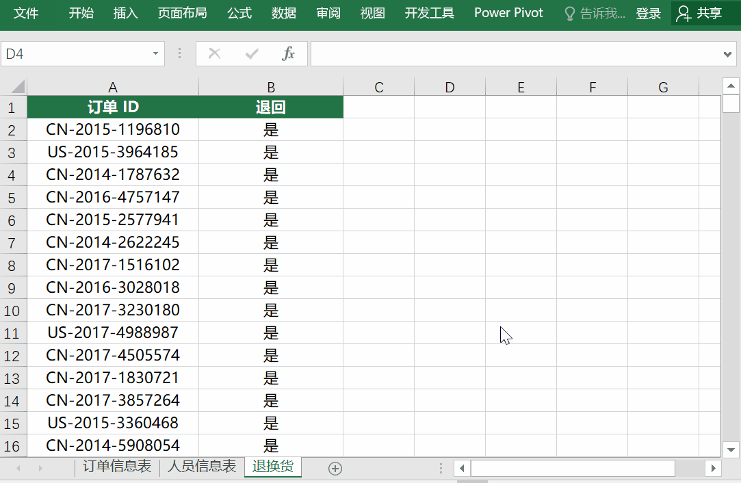 在回到工作簿界面时可以发现,插页“退换货”已经不见了,右键其它插页取消工作表隐藏也没有。