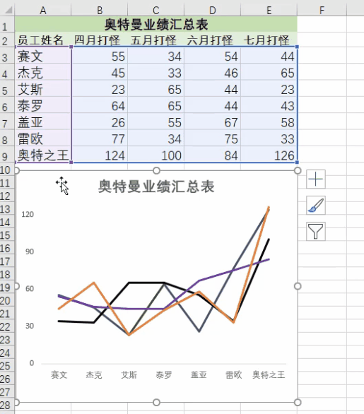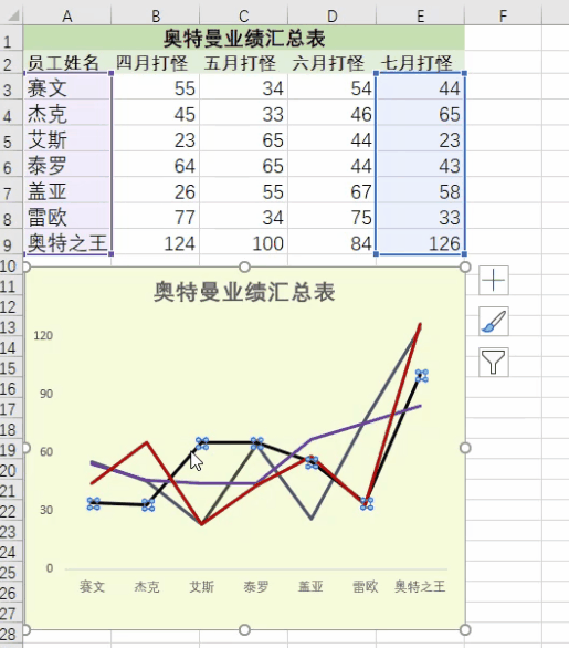 小E:表哥表哥,有没有一种方法,可以让有很多折线的图表,变得更直观?
