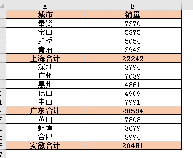 在操作之前可以先思考有没有什么规律。看了下该表格,每个省份分区结束处都有一个合计,因此我们可以根据合计的位置来判断省份的界限。利用累计计数,这样问题基本上就可以搞定。