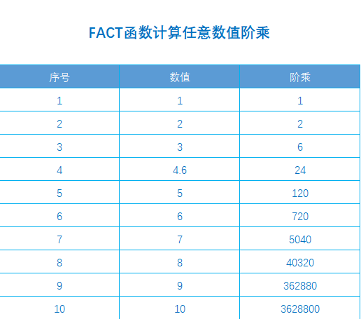 各位Excel天天学的小伙伴们大家好,欢迎收看Excel天天学出品的excel2019函数公式大全课程。今天我们依旧要学习的是Excel函数中的数学函FACT函数。FACT函数是计算阶乘的函数,在数学中我们计算阶乘的公式为:n!=nx(n-1)!,计算小范围内的阶乘,利用我们数学公式计算还算可以接受,如果计算大范围内的阶乘,让我们手动去计算,不知道要计算到哪年哪月?因此我们必须借助FACT函数公式。