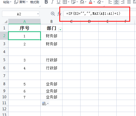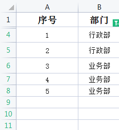 这时候再对B列的部门进行筛选,序号就会始终保持连续了